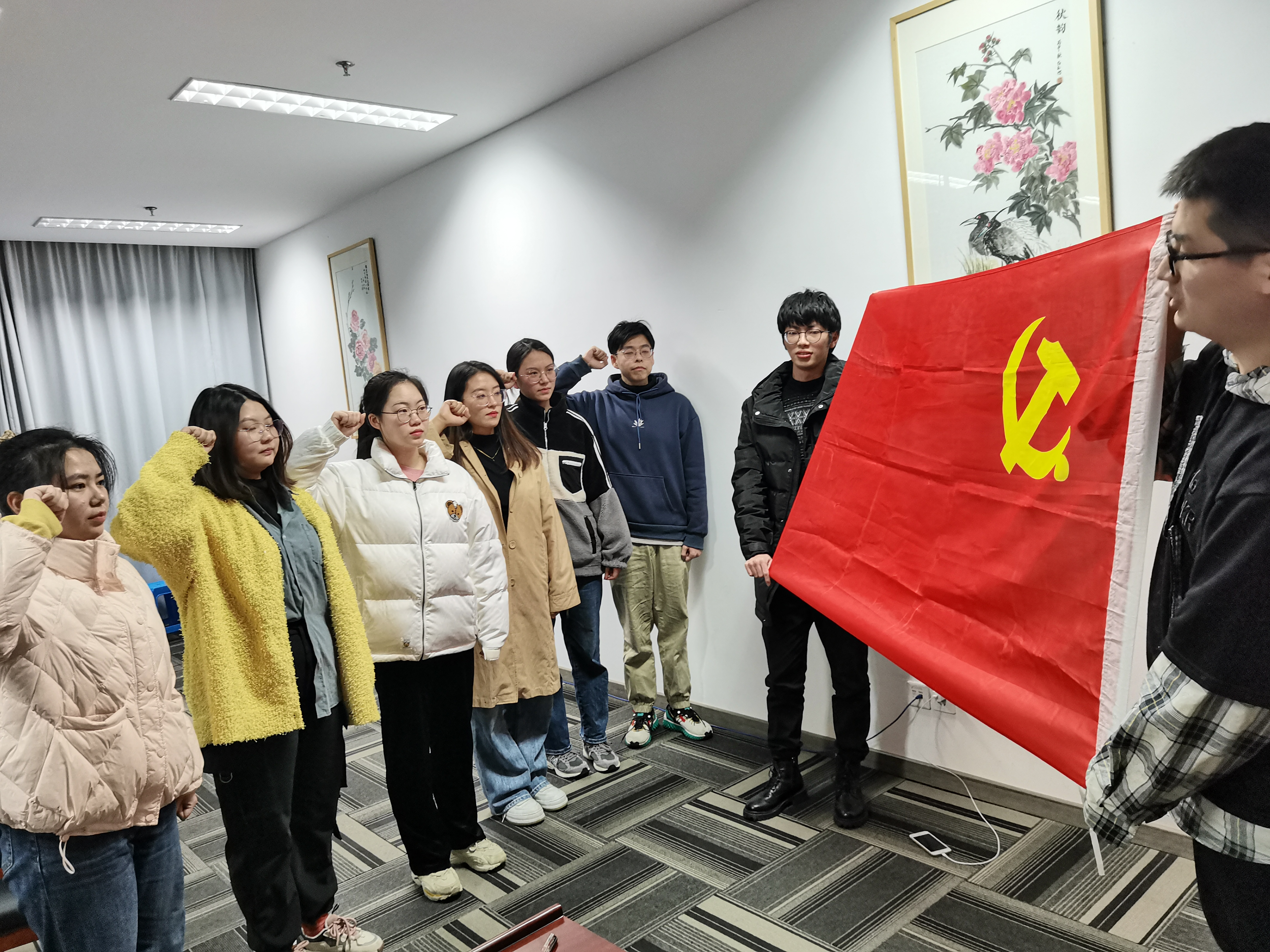 大米影视 第二学生党支部于2021年12月8日在勤园19-226举行支部大会,大会由金鑫焱同学主持,共有21名党员参加会议,经全体在场党员无记名投票决议,会议审批通过陈沁霞等6名同学成为中共预备党员。最后,在支部书记吴季强同志的领誓下,六位新预备党员宣誓中国共产党入党誓词。
