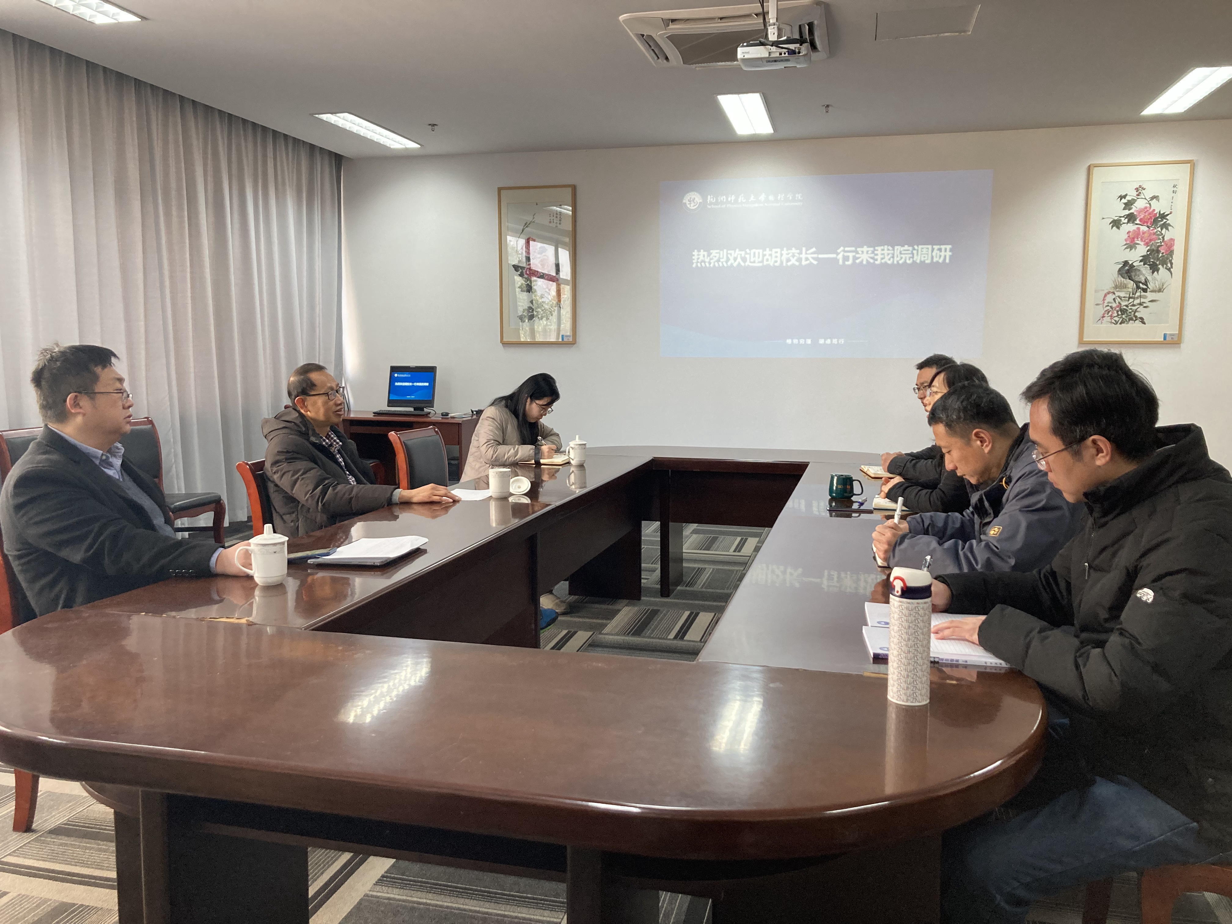 2月21日,副校长胡华在校科研处张杭君处长的陪同下走访大米影视 ,指导新学期工作。学院全体领导班子成员参与了座谈。