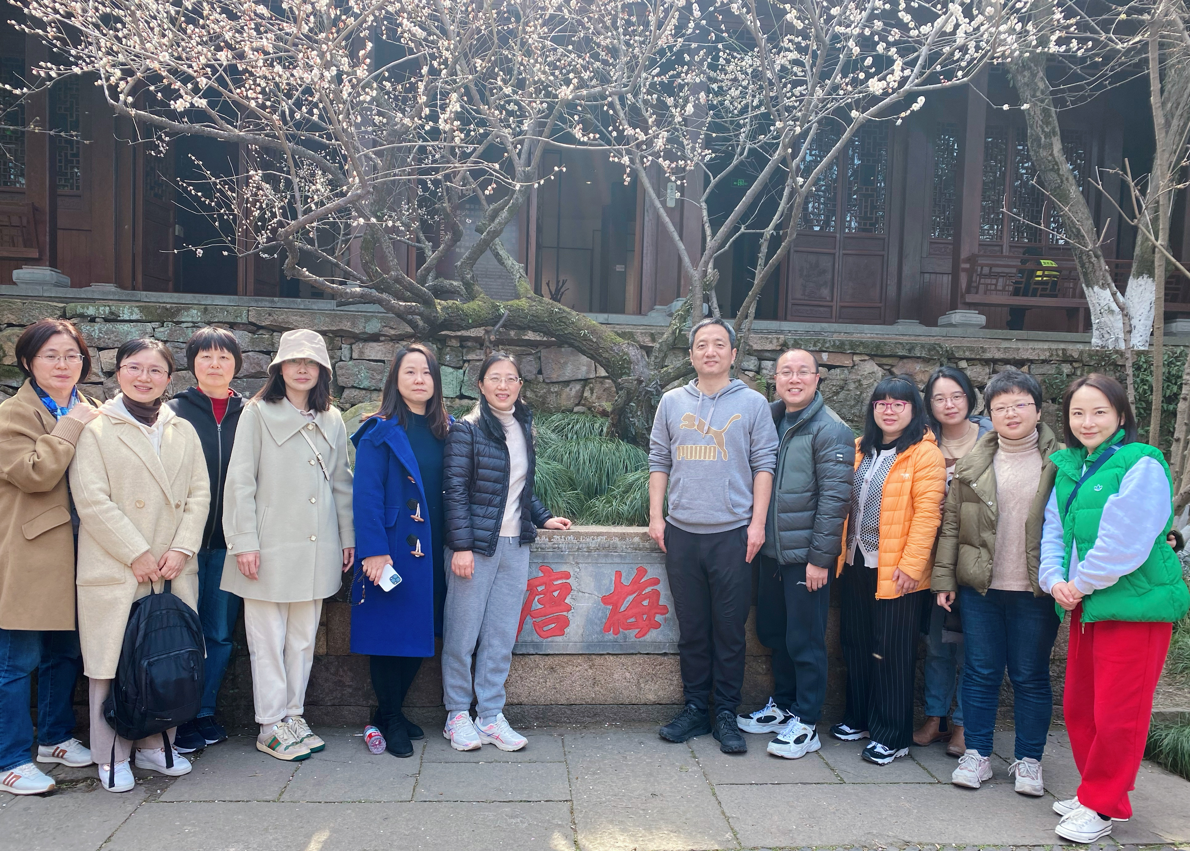 那花瓣周围点缀着点点鲜绿的绿萼梅,弥漫着历史古朴之味的唐梅、宋梅,那一个个戏剧梅花奖获得者的手掌印,那梅兰芳先生的天女散花雕像……一趟超山的赏梅之旅在老师们的惊叹声中洋溢开阵阵欢笑。女同胞们早已迫不及待地三五成群融入了梅花林,或赏花,或留影,爽朗的笑声在花海里荡漾,每个人的脸上都洋溢着暖暖的春意,美景和人已融为一体,形成了一幅美丽的画卷。