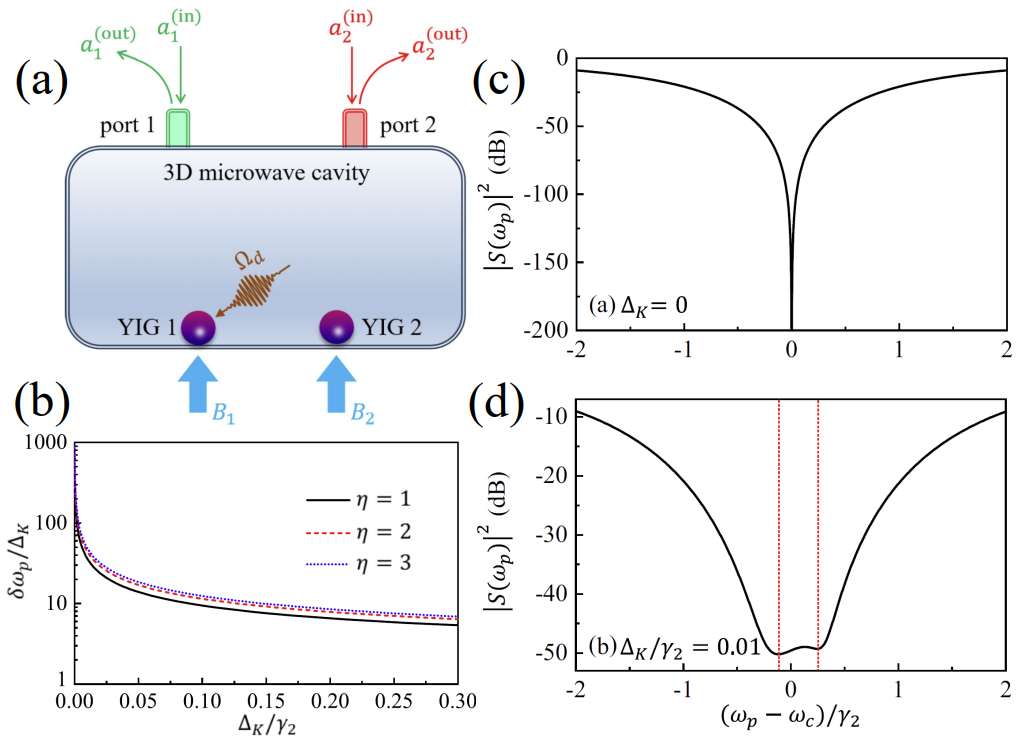 近日,大米影视 教师张国强博士和中国人民解放军陆军工程大学王艺敏博士、温州大学熊伟副教授合作,在物理领域著名学术期刊Physical Review B上发表了题为“Detection sensitivity enhancement of magnon Kerr nonlinearity in cavity magnonics induced by coherent perfect absorption”的研究论文。论文最重要的研究成果是利用相干完美吸收增强了磁振子克尔非线性(MKN)的探测灵敏度。