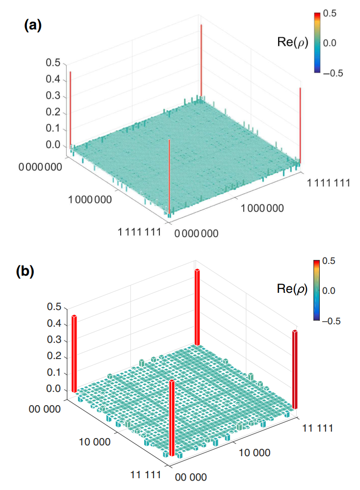本研究工作中,我们提出了一种新的机制,可以在先前报道的2D超导量子比特晶格上有效地生成GHZ纠缠态。该方法基于多量子比特受控iSWAP门,其可以通过有效的三体相互作用实现。另外,涉及的三体相互作用可以很容易地通过调节2D晶格上量子比特之间的适当失谐和耦合强度来合成。根据我们的方案,在深度为3的量子线路内,我们可以获得 37 量子比特GHZ 纠缠态。我们还基于晶格的原始哈密顿量对制备过程进行了数值模拟。采用实验上真实量子芯片的实际参数,37量子比特GHZ态的保真度大于0.5,这证实了我们的方法在现有的二维超导量子比特晶格处理器上是可行的。