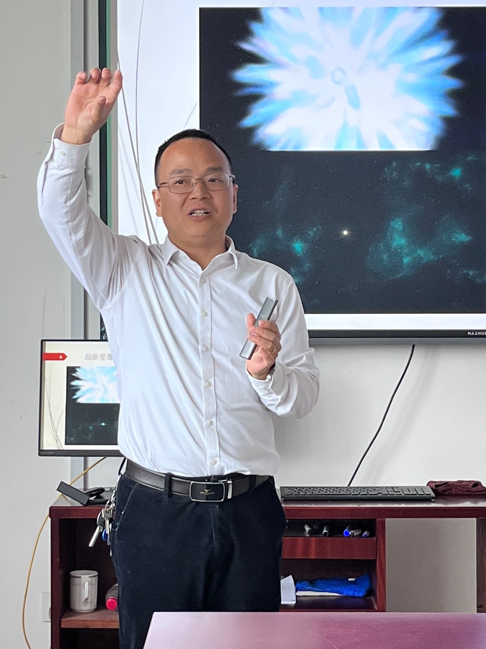 大米影视 日前邀请华中师范大学的俞云伟教授来访。他为师生们带来了一场别开生面的报告,题为“惊鸿一瞥:探秘宇宙中短暂而剧烈的电磁爆发现象”。