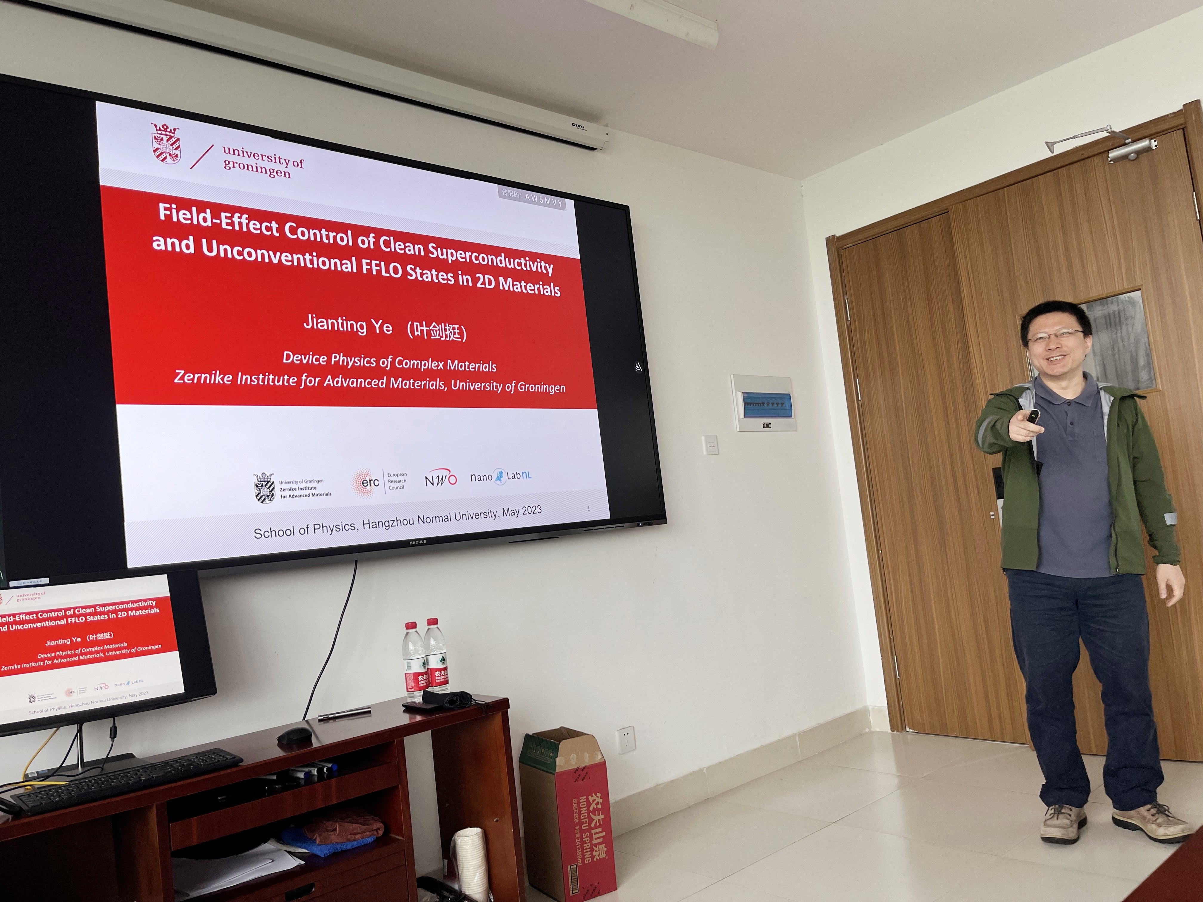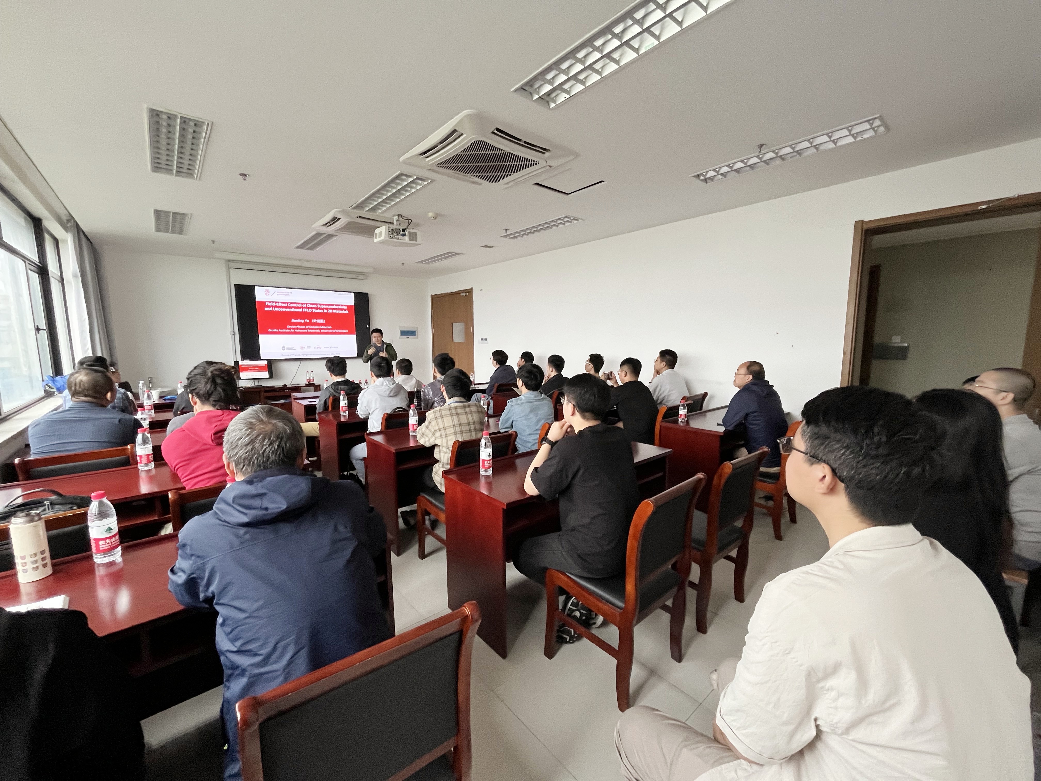 5月22日上午,来自荷兰格罗宁根大学叶剑挺教授应邀走进讲堂,与师生畅谈“Field-Effect Control of Clean Superconductivity and Unconventional FFLO States in 2D Materials”。