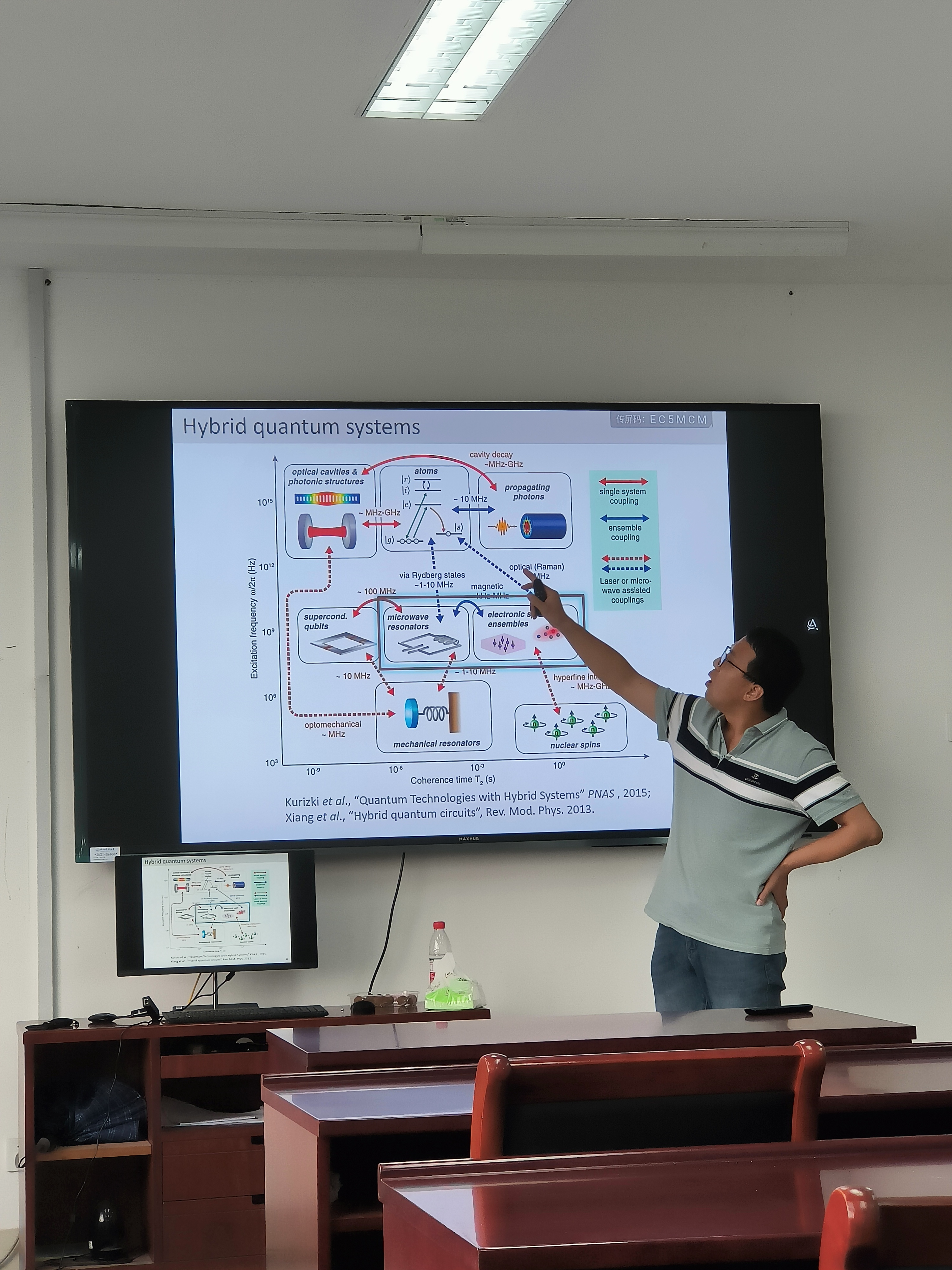 张国强做“腔磁振子混合系统中的双稳与相变”的报告