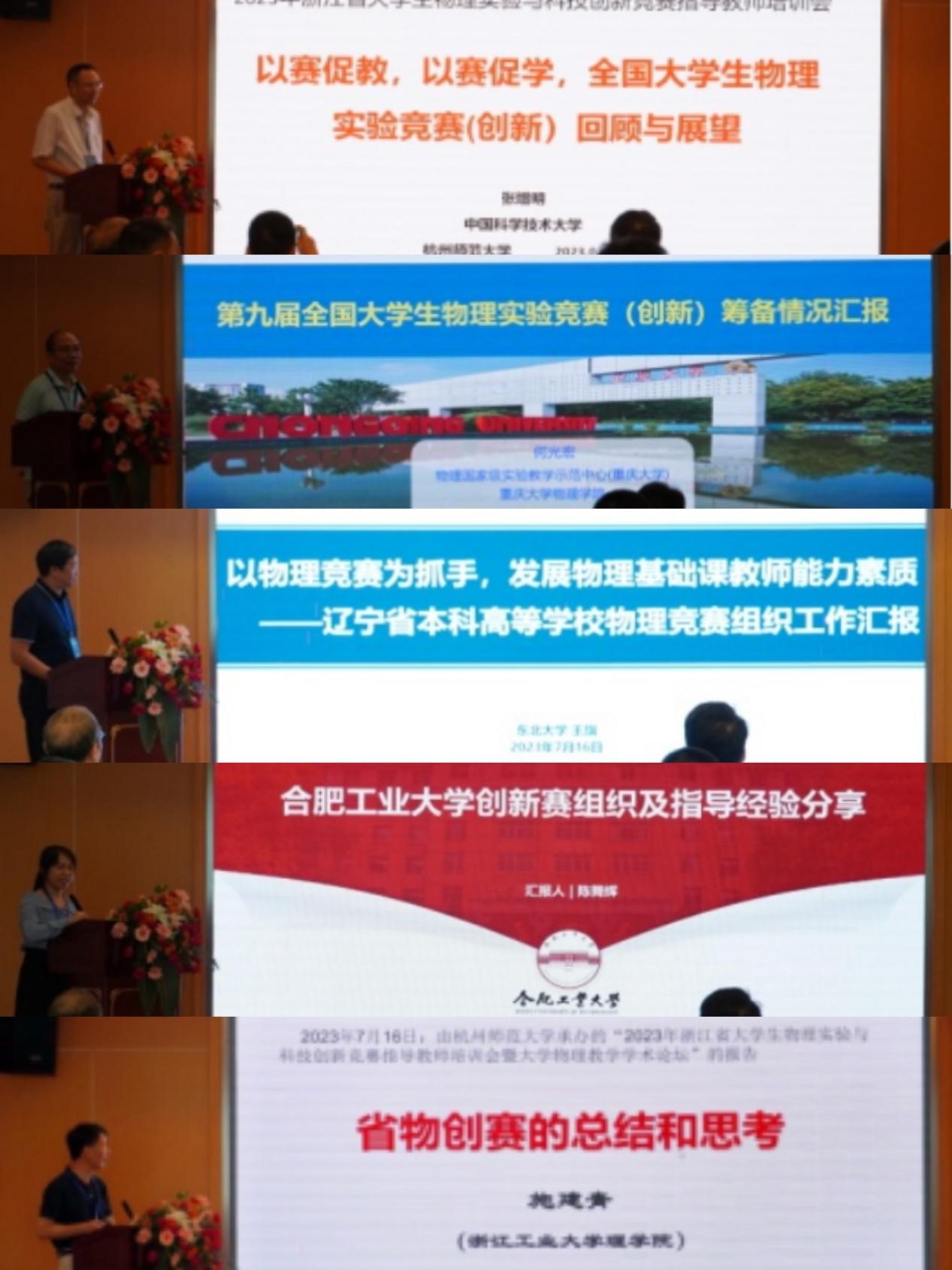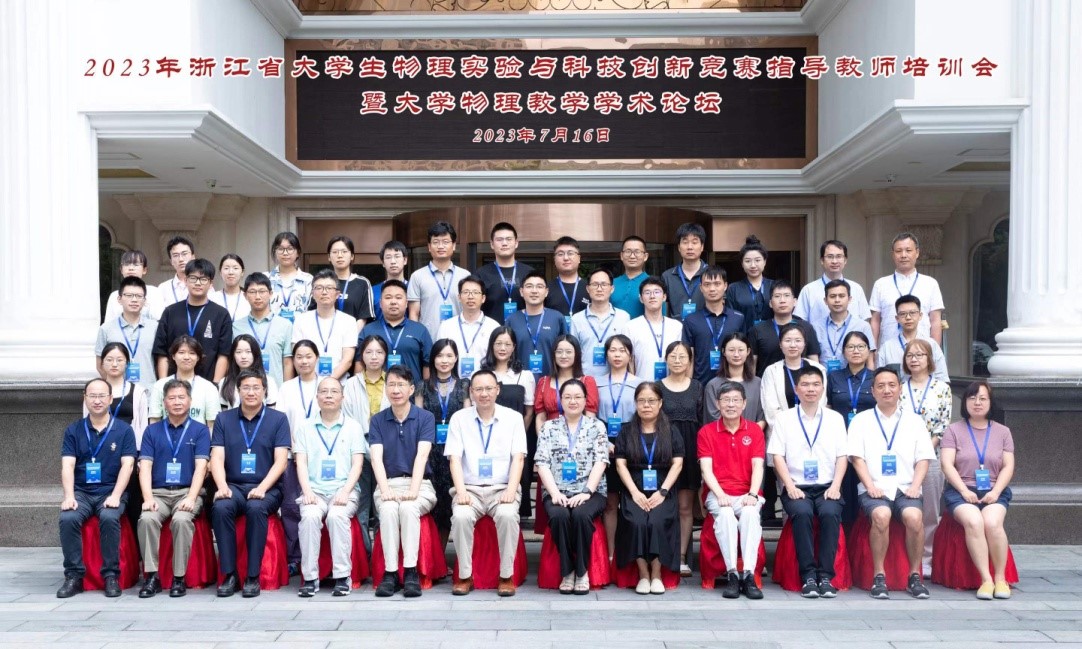 7月15日-7月17日,2023年浙江省大学生物理实验与科技创新竞赛指导教师培训会暨大学物理教学学术论坛在大米影视 仓前校区召开。来自全省20余所高校以及中国科学技术大学、重庆大学、东北大学、合肥工业大学等省外高校从事物理实验竞赛和大学物理教学工作的70余人参加了本次会议。会议由浙江省大学生物理实验与科技创新竞赛组委会、浙江省高等学校大学物理课程教学指导委员会、浙江省高等学校物理学类专业教学指导委员会、浙江省物理学会主办,大米影视 承办。大会开幕式由浙江省高等学校大学物理课程教指委委员、原杭师大理学院院长詹士昌教授主持。