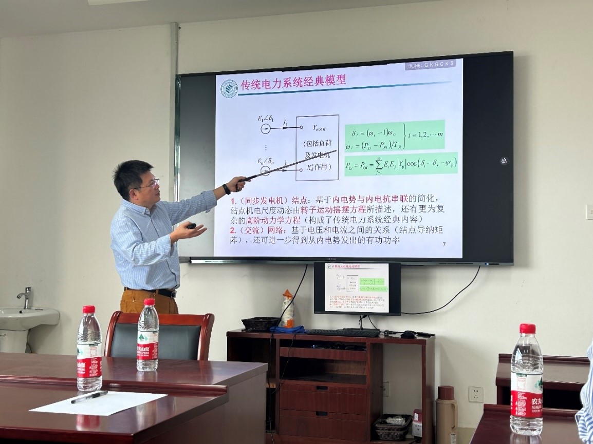 占萌教授的报告深入浅出、声情并茂的讲解使得整个报告会气氛活跃。学术交流期间,占老师与师生进行了深入的交流、讨论。通过本次学术报告及交流,促进了同学们对一般非线性系统和电力系统稳定性的了解,同时也激发了同学们对科学研究的兴趣。