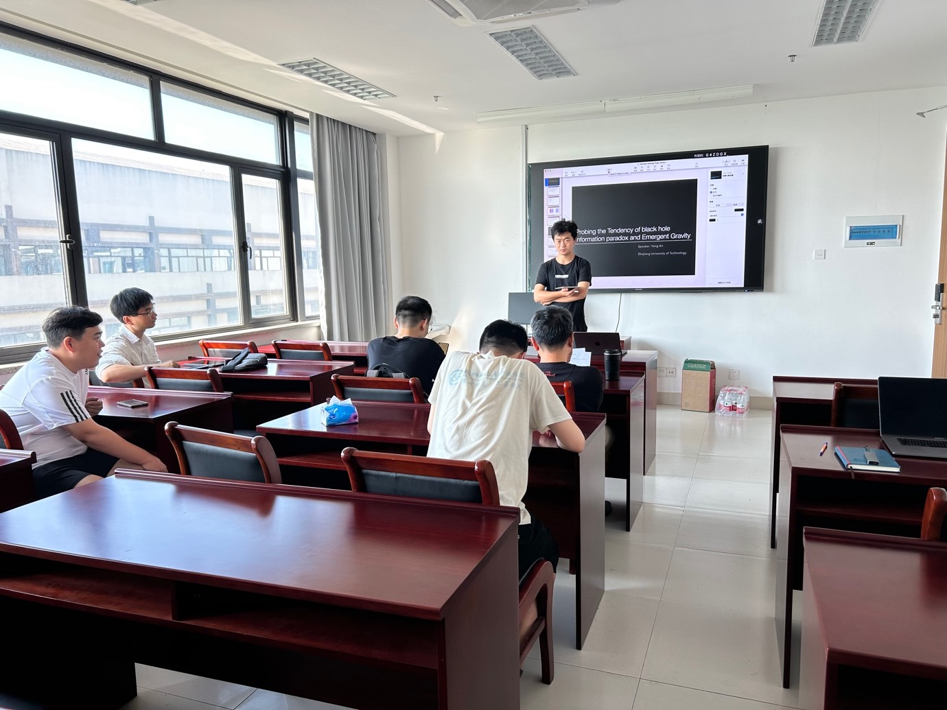 10月20日下午1:30,在勤园20-518会议室,中科大的钟树清博士与理论物理方向的师生分享交流他在高能天体物理领域的工作,并作了题为“从伽马射线暴到快速射电暴”的学术报告。报告中,钟博士介绍了这两类高能极端爆发现象的基本性质以及近年来的新进展,重点关注它们的分类和起源问题。学院理论物理和粒子物理方向的多名师生参加了这次报告,认真聆听并提出问题,交流项目前景和可能的交叉合作课题。报告会历时一个小时。