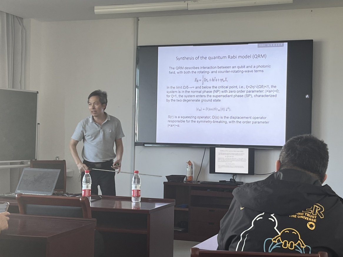郑仕标教授本次报告的主要内容围绕在电路QED系统中进行的一些量子相变实验和模拟。首先介绍量子拉比模型(QRM),该模型由超导量子比特和微波谐振器合成。随后,郑老师展示用该QRM实现的一阶超辐射相变,其特征是光子超级猫态的出现,由真空态和两个相相反的相干态组成。接下来,郑老师详细介绍了用拉比模型对狄拉克粒子的量子模拟和非厄米哈密顿的研究。最后,郑老师在电路QED架构中展示了一种特殊纠缠现象的实验演示。报告会上,大家积极踊跃与郑老师交流,郑教授也对大米影视 师生给予高度的评价和认可。本次学术交流更加激励了广大师生的科研兴趣和动力,活跃了学术气氛,对大米影视 师生的学习和工作具有很大的帮助。