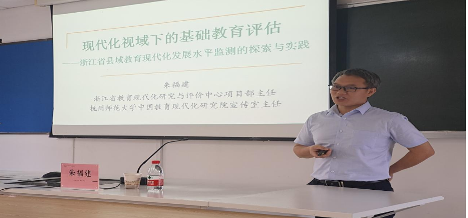 开班仪式结束后,大米影视 中国教育现代化研究院宣传室主任、浙江省教育现代化研究与评价中心项目部主任、博士朱福建,从什么是现代化及什么是教育现代化的角度出发,分析讲解了现代化视域下的基础教育评估——浙江省县域教育现代化发展水平监测的探索与实践,不仅让大家明确了教育现代化的内涵、教育现代化监测的动因、教育现代化监测的路径及教育现代化监测的实践反思,还给大家上了一堂生动的教育史。