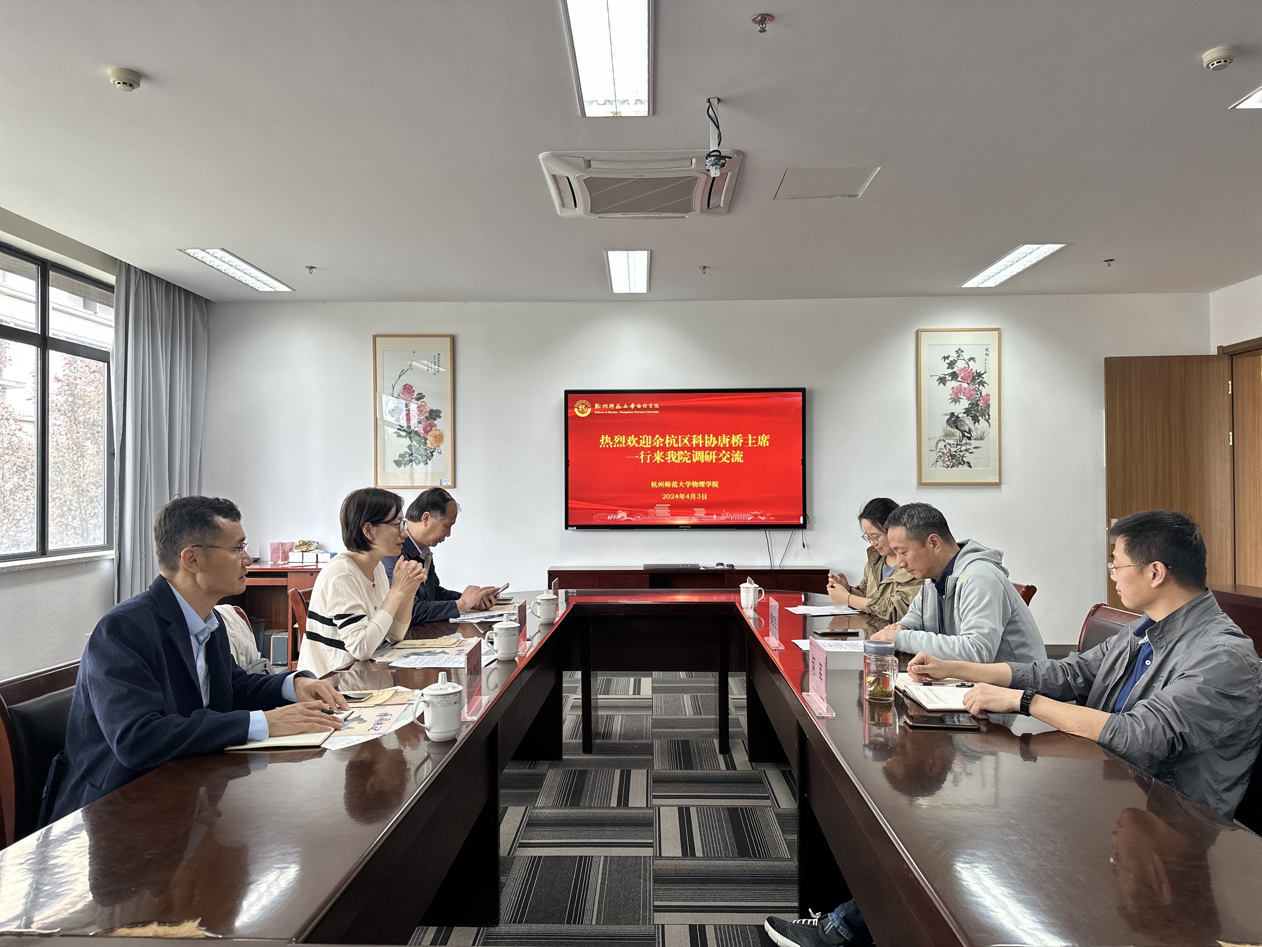 4月3日,余杭区科协主席唐桥、副主席黎德峰一行来大米影视 走访区政协委员、院长侯红生教授,并就青少年科普教育工作开展调研。党委书记何军和教师代表参加座谈。