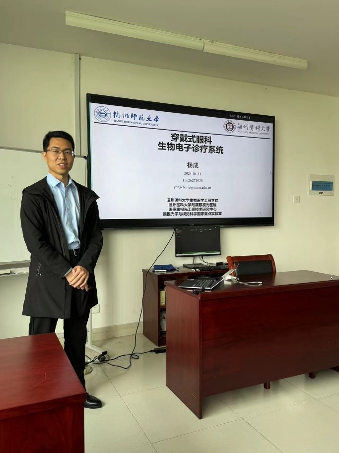 为了加强多学科交叉,营造良好的学术氛围,4月11日下午两点,温州医科大学杨成博士应邀来大米影视 作题为“穿戴式眼科生物电子诊疗系统”的报告。杨成博士一直致力于柔性电子科学-眼科学交叉研究,发展穿戴及植入式眼健康生物电子诊疗系统,探讨生物电子在眼健康生理信息检测及疾病精准干预方面的关键技术和转化应用研究。