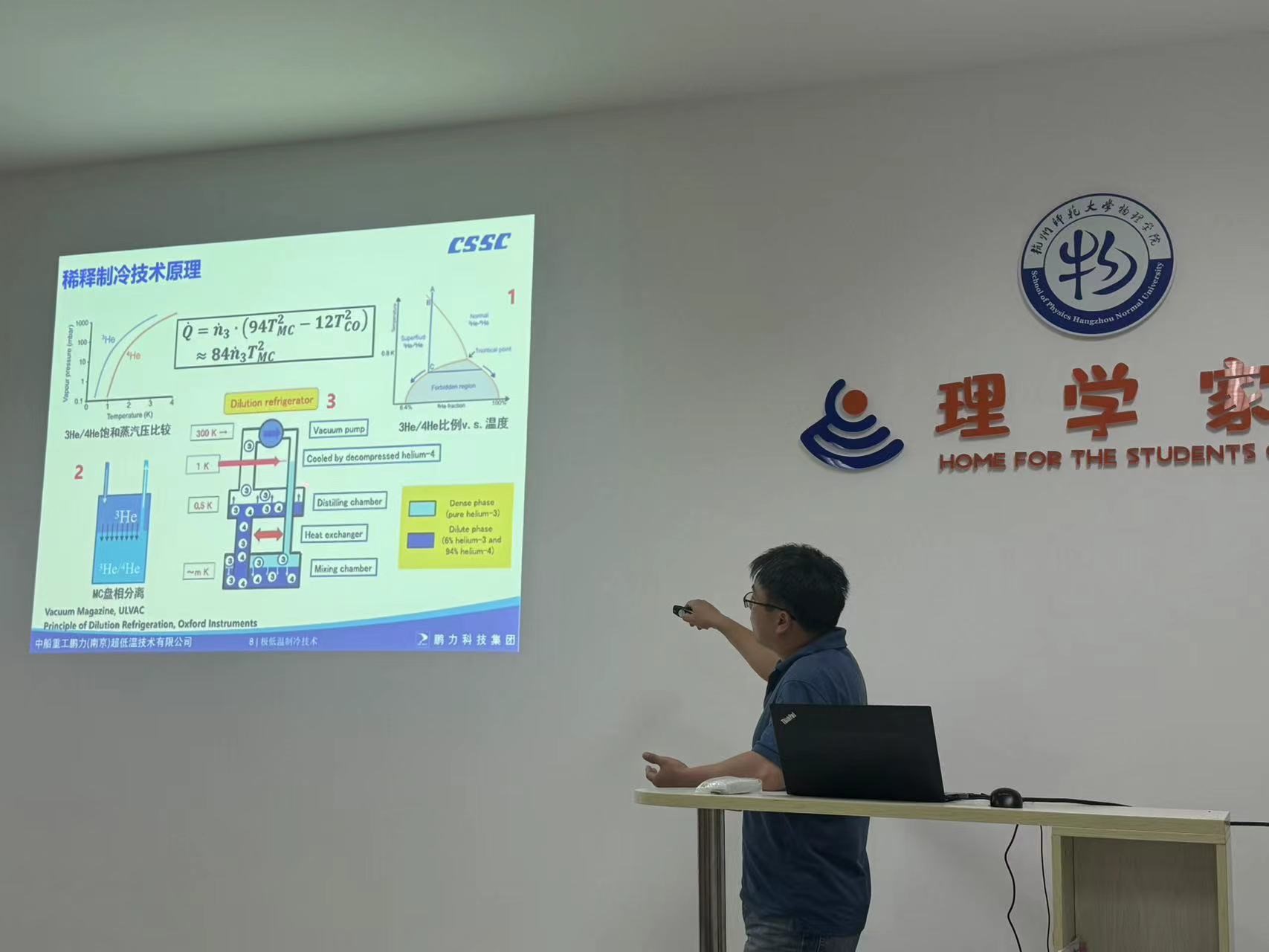 本报告首先介绍物理学中低温条件实现的方式以及背后相关的物理,包括:氦气压缩制冷、稀释制冷和绝热去磁制冷等。紧接着程天博士向在场师生们介绍了这些制冷原理对应的工程化实施案例,并聚焦于国内外在极低温领域最新的技术发展动态,着重讲解了稀释制冷技术在量子相关产业的应用状况,以及极低温领域未来的发展前景。报告结束后,程天博士与现场师生进行了热烈的交流和讨论,解答了他们的问题。本次报告不仅加深了师生们对低温技术的理解,也拓宽了学生们对未来就业方向的认识。