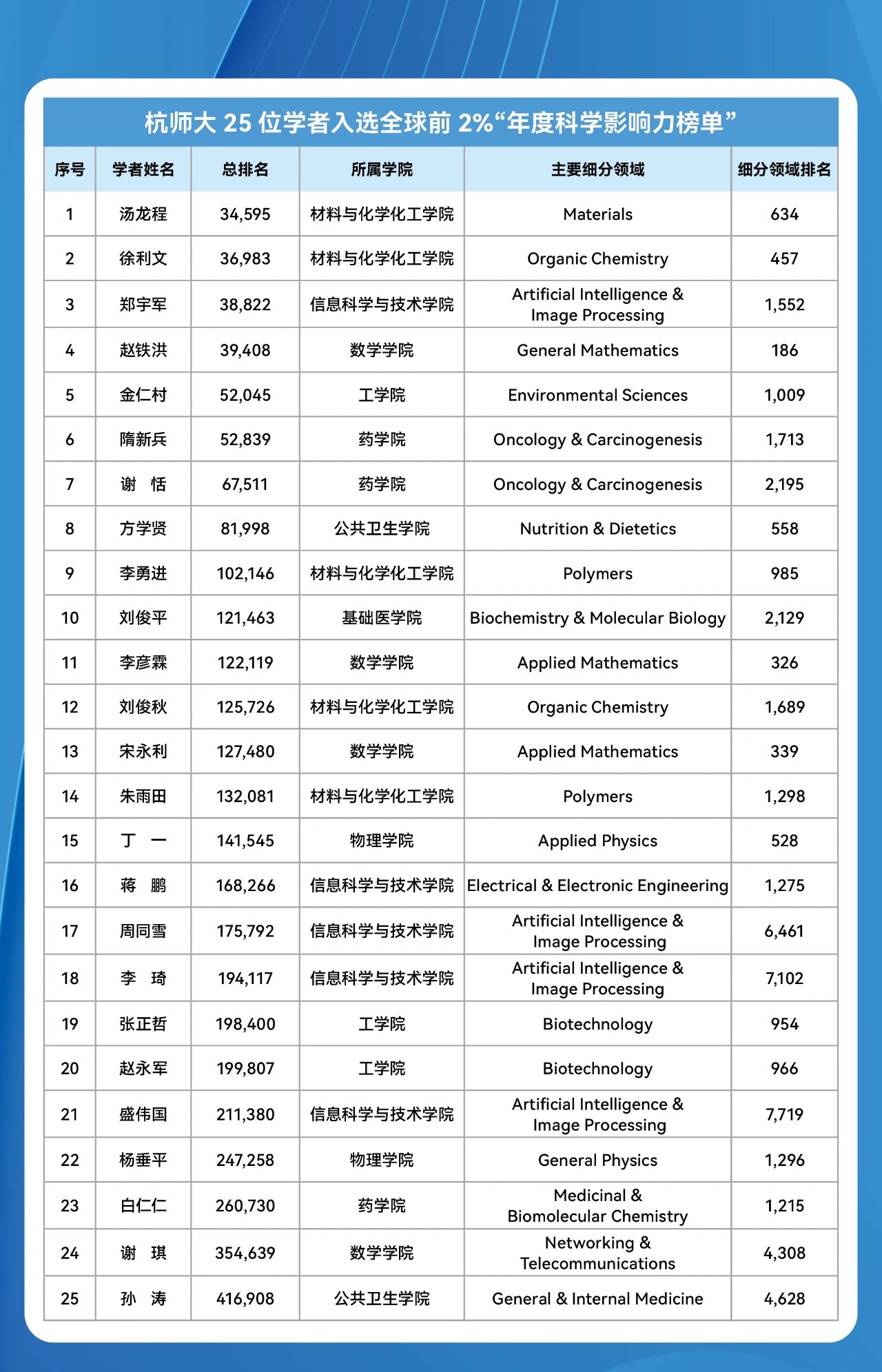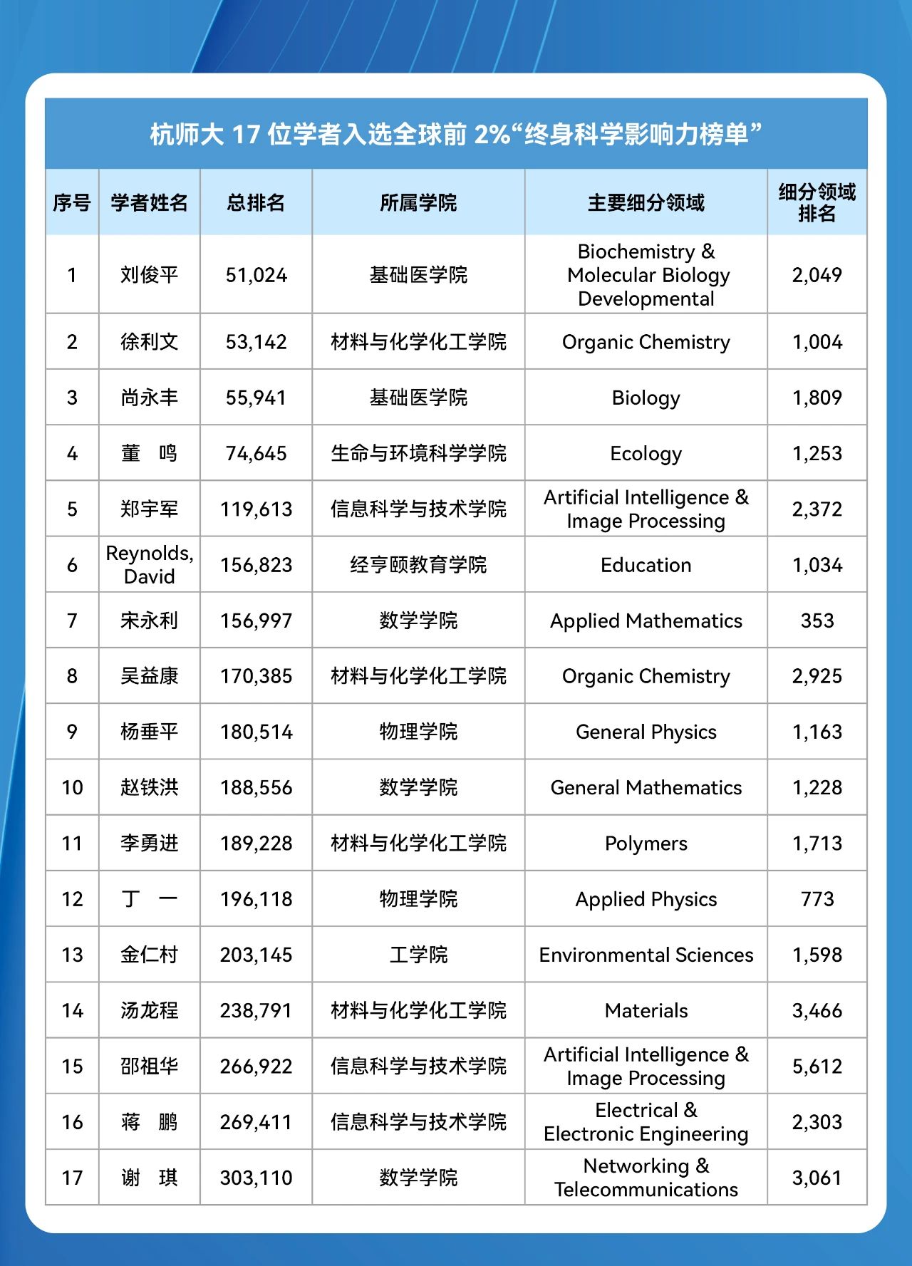 2024年9月16日,美国斯坦福大学和爱思唯尔数据库发布2024全球前2%顶尖科学家榜单(World's Top 2% Scientists),榜单共分为“终身科学影响力榜单”(关注整个学术生涯迄今的影响力)和“年度科学影响力榜单”(聚焦本年度的学术成就)。大米影视 共有30名学者上榜,其中,大米影视 有杨垂平教授、丁一教授2位学者分别入围“终身科学影响力榜单”、“年度科学影响力榜单”,见下表。