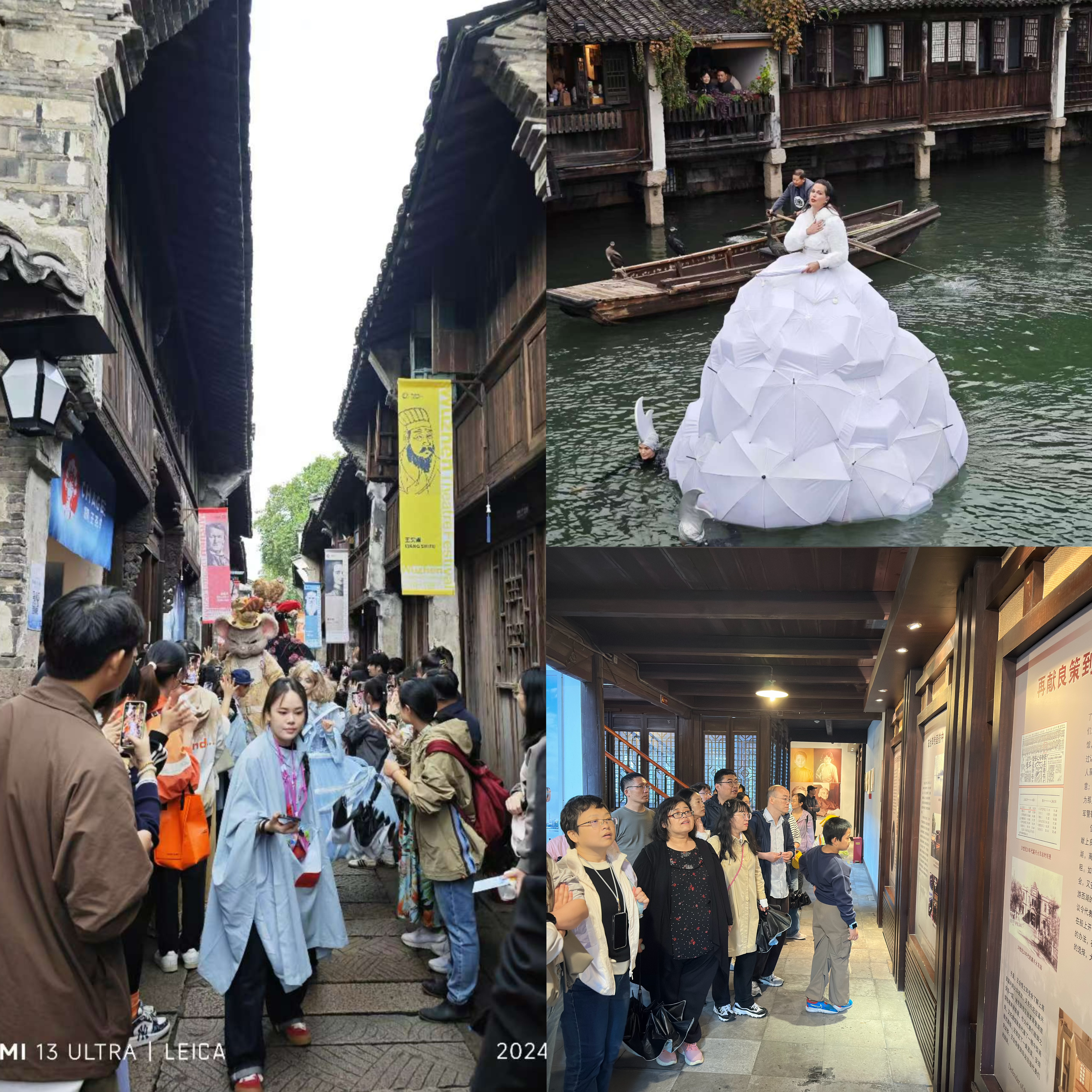 而西栅则以其独特的建筑风格和商务休闲度假氛围吸引了众多游客。在这里,教职工们不仅可以欣赏到精美的古建筑,还可以感受到乌镇作为现代旅游胜地的魅力。值得一提的是,正值乌镇戏剧节期间,教职工们还幸运地观赏到了精彩的戏剧巡游表演,真正体验到了“游人如织”的热闹景象。