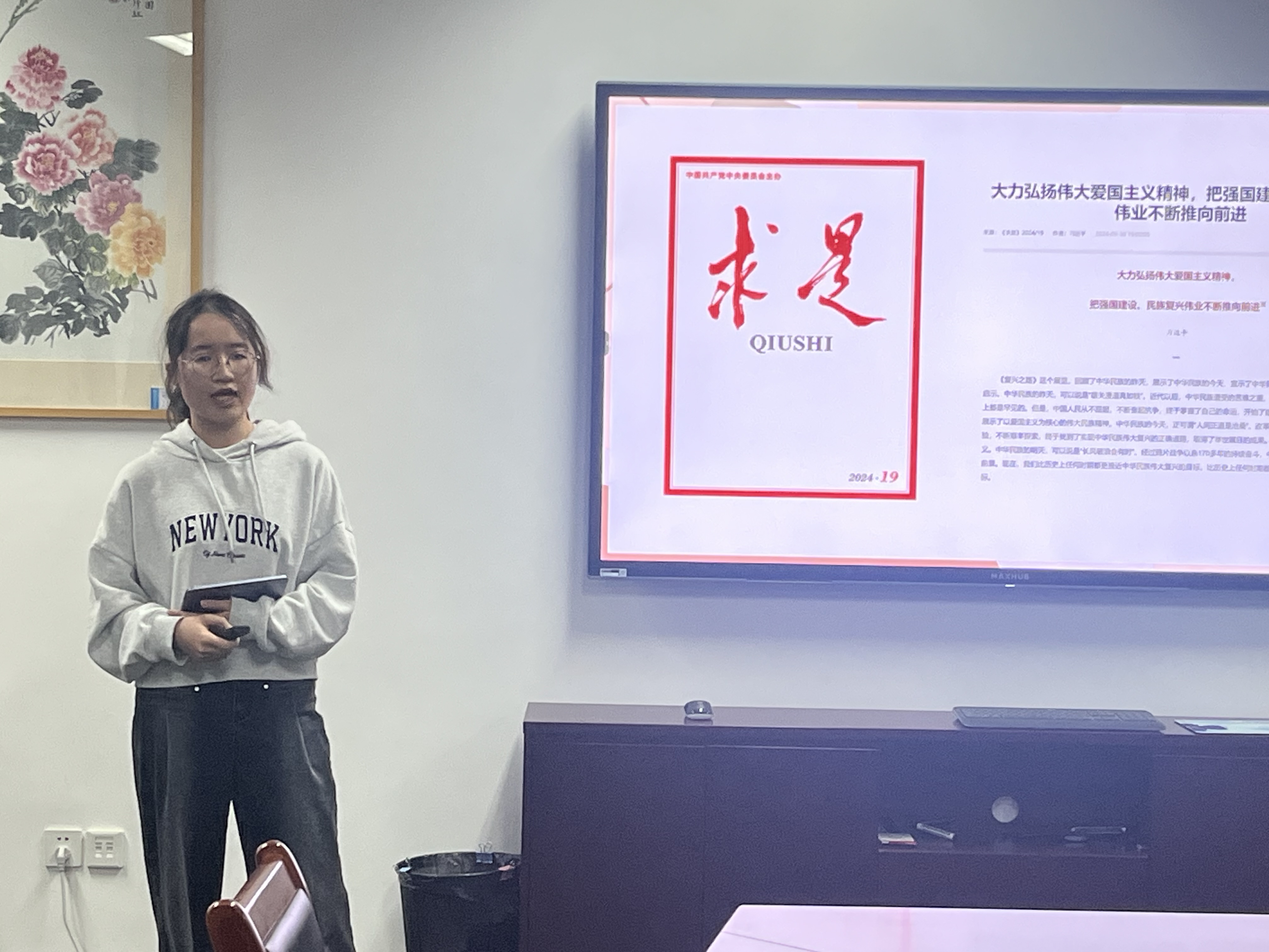 2024年10月24日,大米影视 学生第一党支部于勤19-226会议室开展了十月主题党日活动,由薛景缤、舒一惠两位党员分享他们关于爱国主义精神的心得体会。