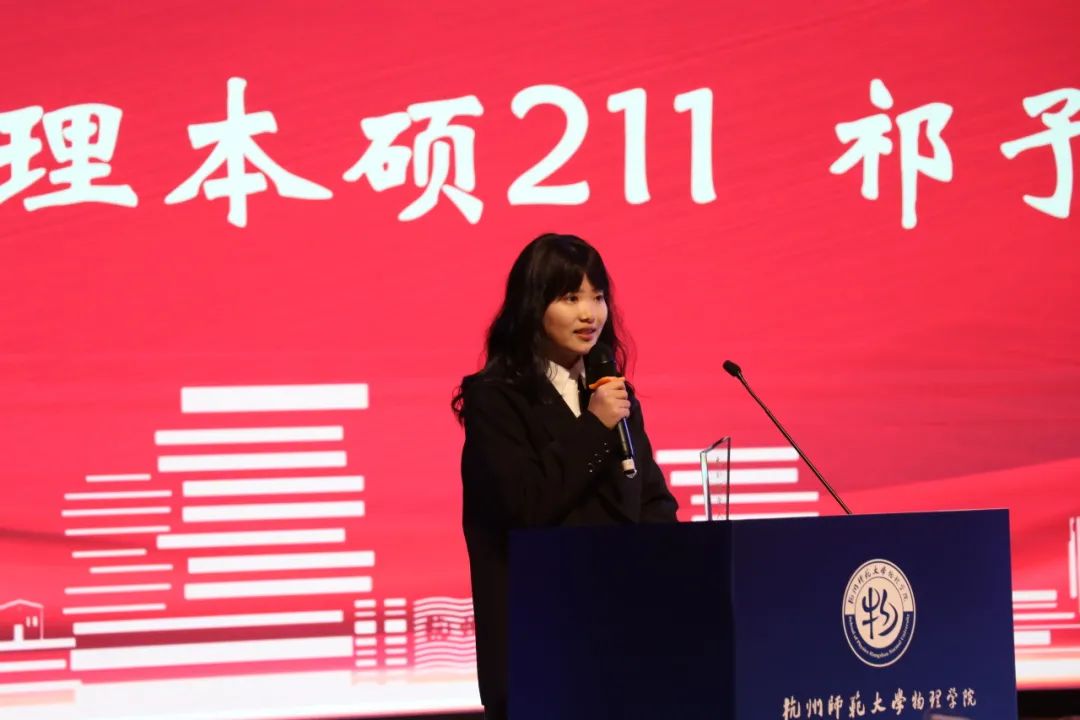 “创新创业奖”获得者代表物理本硕211班的祁予扬同学分享了她在科研和竞赛活动方面的心得与体会。她告诉我们,参与竞赛的过程是充满收获与挑战的。即使失败,也不要灰心,只要找准定位、勇敢尝试就一定能取得属于自己的成功。