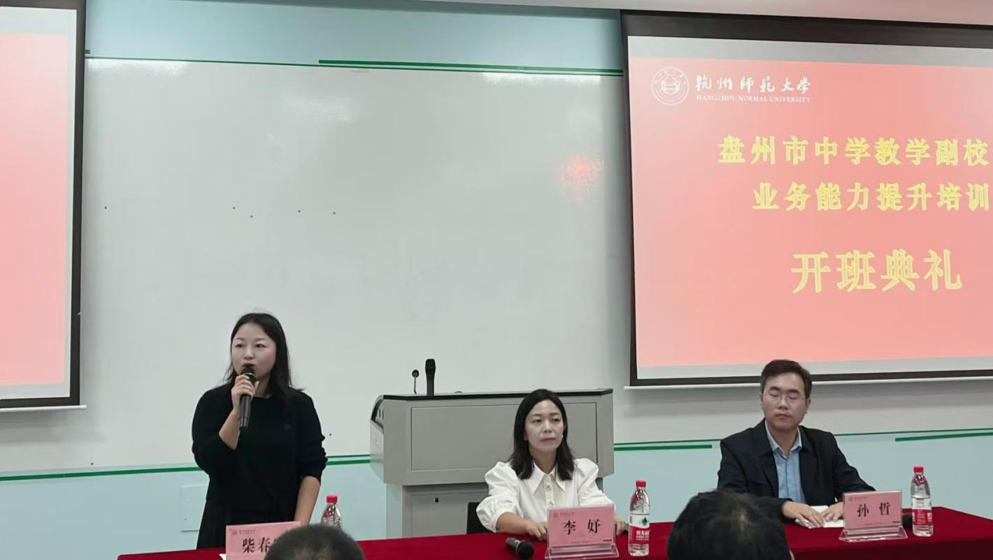 金秋十月,硕果累累,继盘州市中学德育副校长培训结束后,盘州市中学教学副校长又赴杭开启求学问道之路。2024年10月26日上午,中学教学副校长业务能力提升培训活动在大米影视 正式开启。在开班式上,大米影视 副院长孙哲教授、盘州市教育局教师工作科科长李妤分别作了讲话。孙院长发表了热情洋溢的致辞,对盘州的学员表示热烈欢迎,孙院长向学员们介绍了大米影视 ,对此次培训的方案和课程进行了详细解读。李科长强调了学习纪律,指出教学在学校教育体系中的核心作用,希望大家抓住学习机遇,持续提高自身的专业素质和管理技能,为促进学校教育教学的提升作出积极贡献。八中副校长蔡荣兵代表学员发言,表示大家一定会同心同行同学习,且学且思且提升,为盘州教育的高质量发展奉献力量。