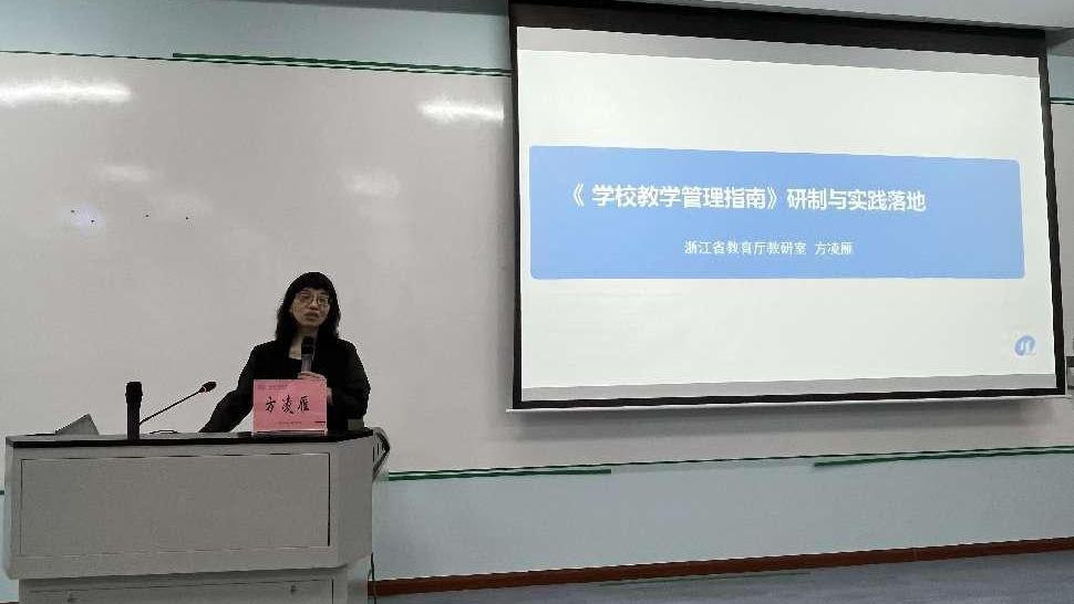 下午,浙江省教育厅教研室综合部方凌雁主任就“《学校教学管理指南》的解读与实践指导”做了专题报告,深入剖析了2021版《学校教学管理指南》的编制背景、核心架构以及在实践中的应用建议。
