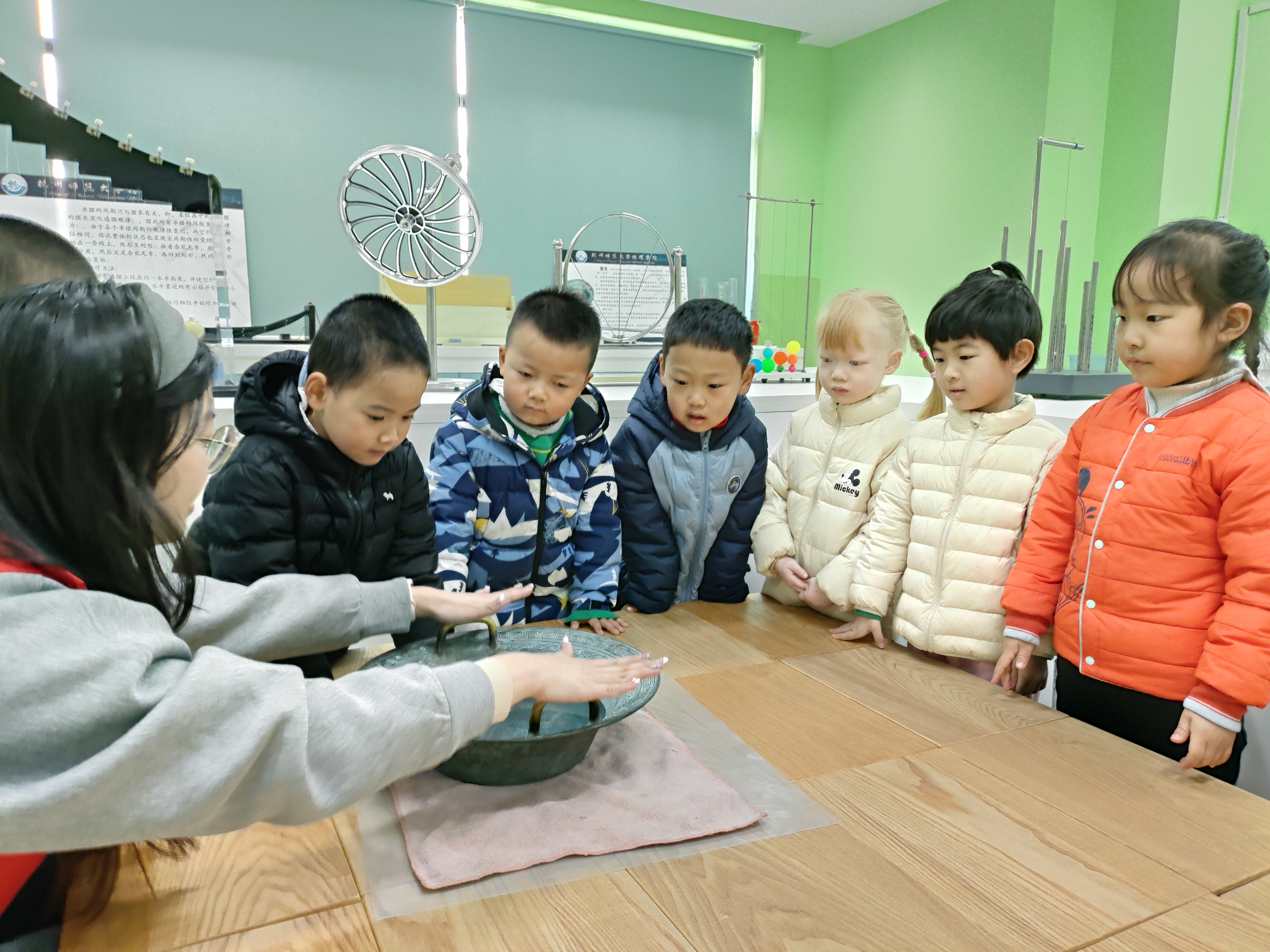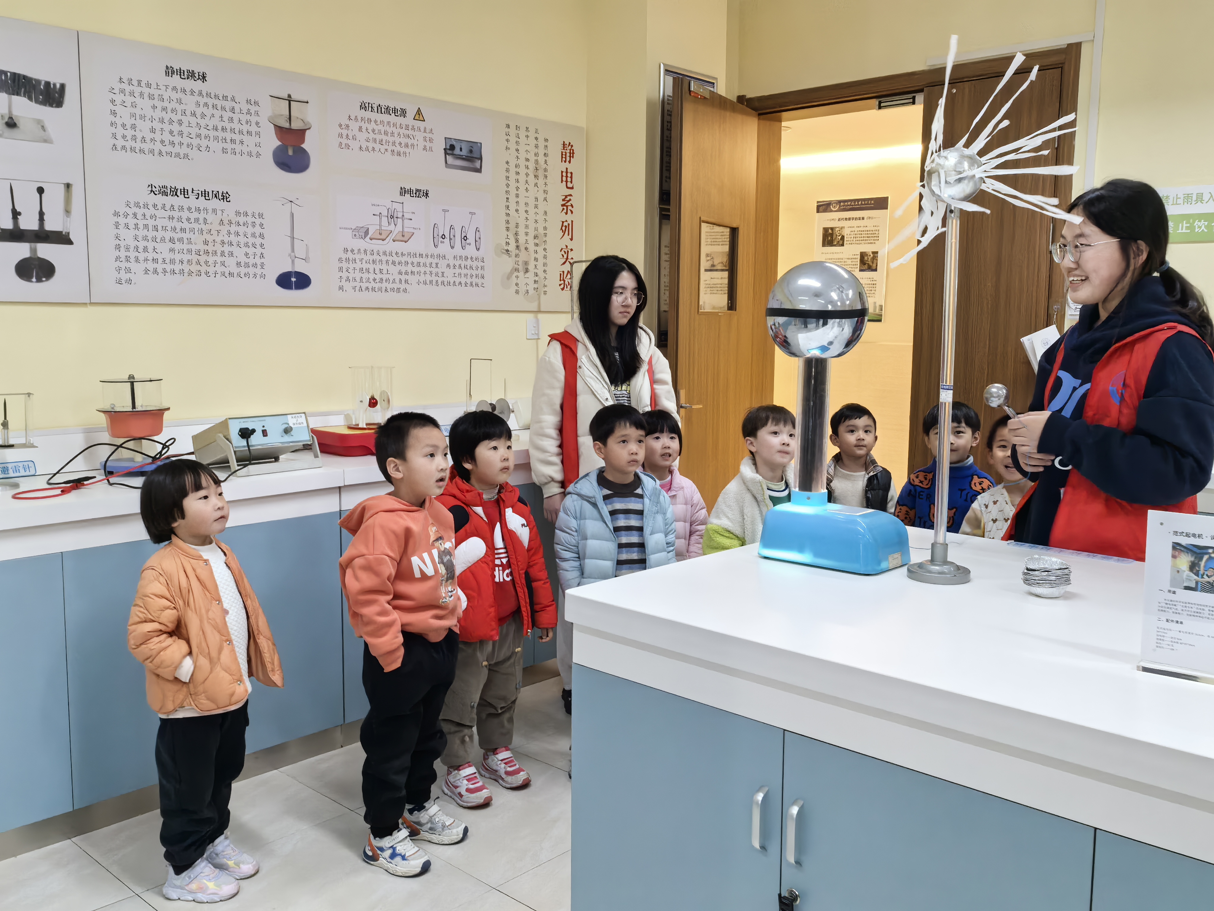 三月杭城,春意正浓。在这充满生机的季节里,一场别开生面的科学启蒙之旅在大米影视 物理演示实验室拉开帷幕。近日,学院接待了杭师大幼儿园的集体参观活动,党员教师和学院科普志愿者带领孩子们沉浸式体验科学魅力,激发幼儿科学探索兴趣,培养观察与思考能力。此次活动孩子们参观了涵盖力学、热学、声学、光学和电学五大主题的三个演示实验室。长达一小时的互动体验与趣味演示,为小朋友们揭开了物理世界的神秘面纱。