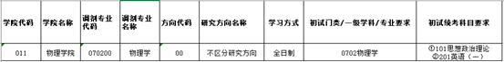 2.初试成绩(含加分,下同)须符合第一志愿报考专业的A类考生国家线,且达到我校物理学专业的复试分数线。