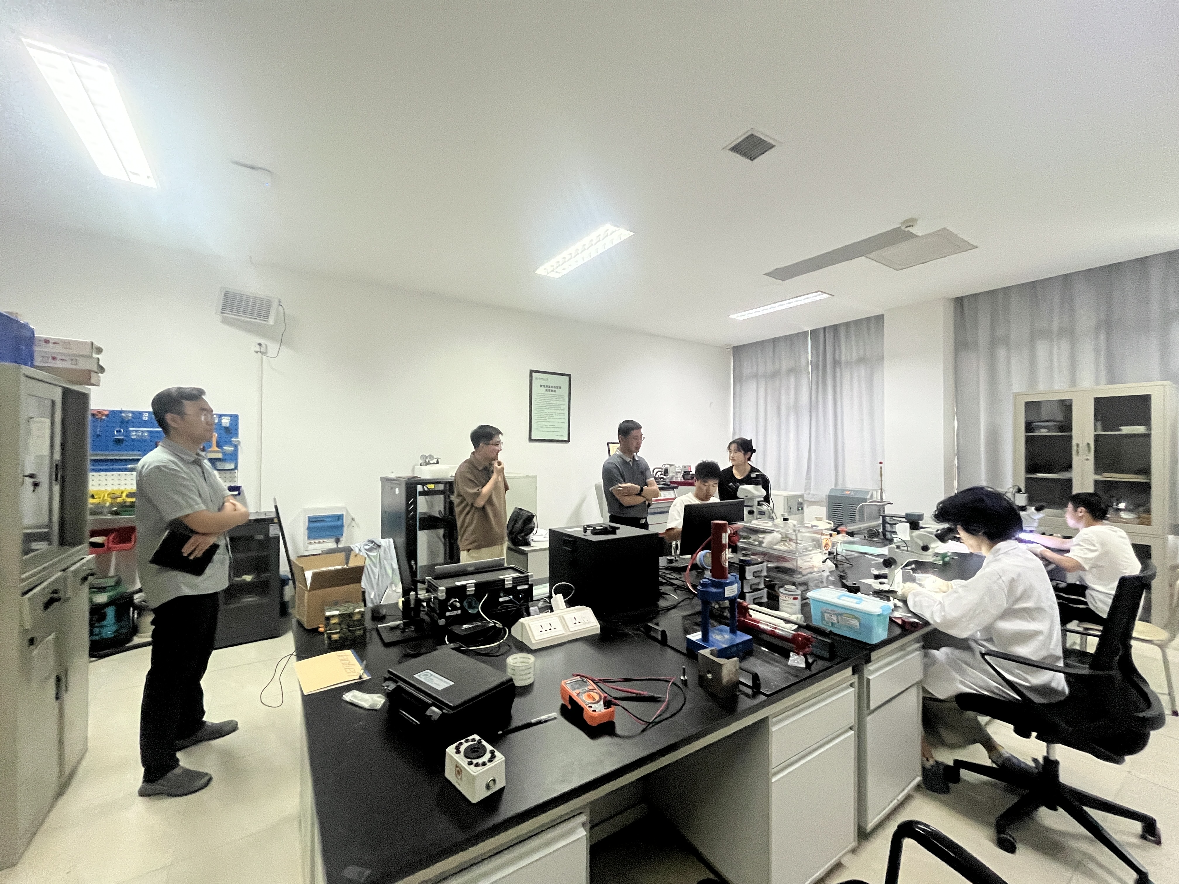 本次检查重点围绕人员管理责任落实、消防安全、用电安全、仪器设备使用情况等方面开展。何书记一行先后对学院各教学和科研实验室、科创实验室等场所开展检查,就加强假期安全工作与师生进行交流,提醒管理老师和实验室内工作师生加强仪器使用规范教育,落实好用电安全注意事项,要切实做好假期开放实验室安全管理工作。