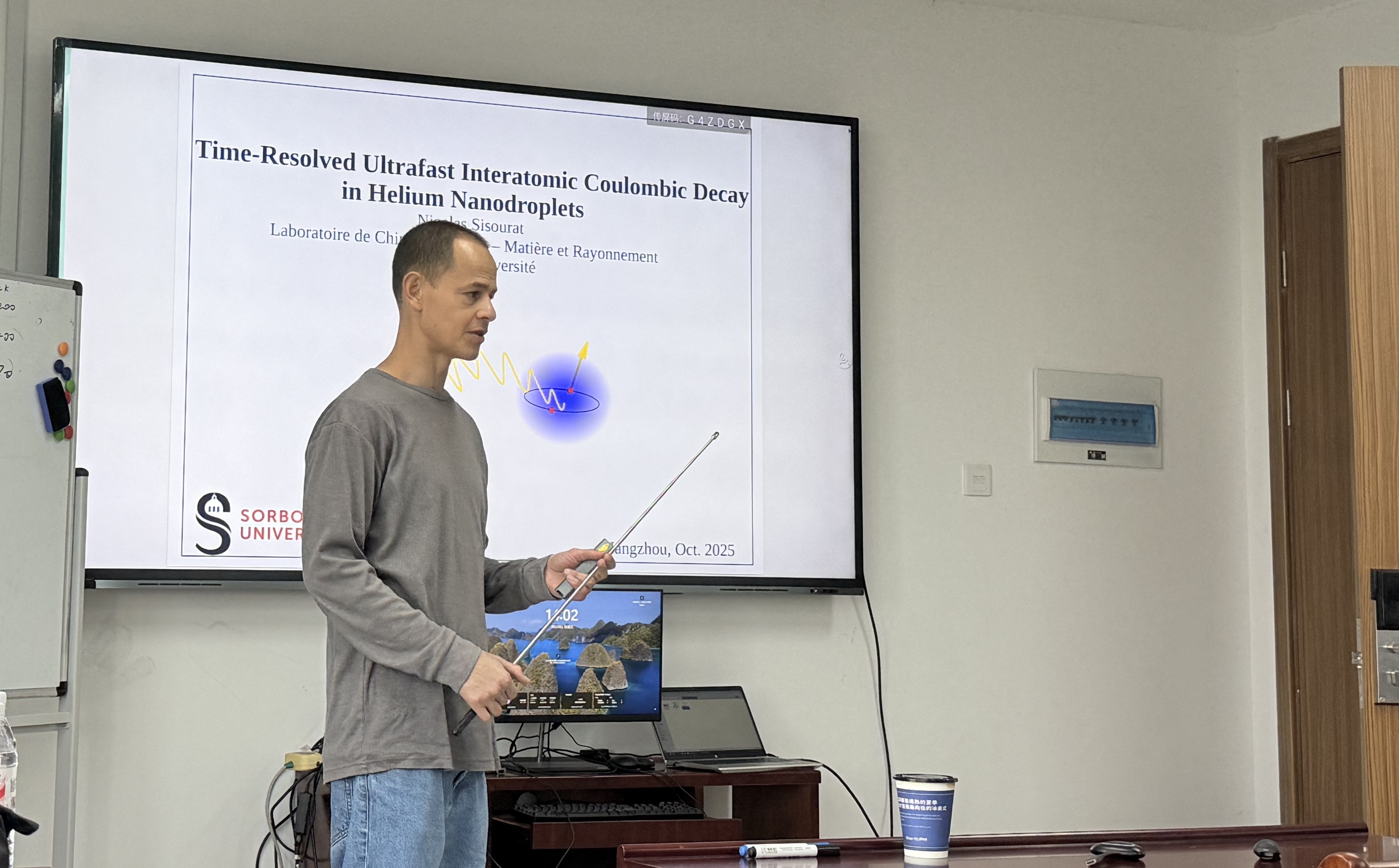 10月31日下午,法国索邦大学(Sorbonne Université)Nicolas Sisourat 教授应邀来大米影视 作题为 “Time-Resolved Ultrafast Interatomic Coulomb Decay in Helium Nanodroplets(氦纳米液滴中超快原子间库仑衰变的时间分辨研究)” 的学术报告。
