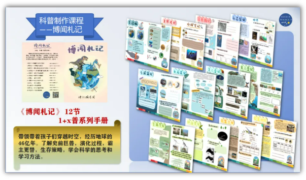 项目从自然博物馆科普讲解起步,逐步拓展至社区定制课程,创新融入AI技术开发3门特色课程,在云谷学校、富春小学等多个场景开展实践,始终坚持以“唤醒思维”为核心教育理念。团队精心打造的《博闻札记》12节系列课程及“1+X”科普手册,以“穿越地球46亿年”为主线,通过趣味互动引导青少年探索史前生物奥秘,系统培养“提出问题—分析逻辑—解决问题”的科学思维方式。