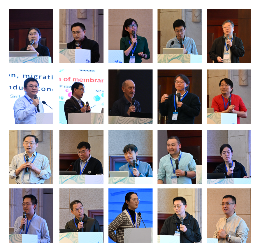 会议期间三十余位国家级高层次专家作了高水平学术报告,内容紧跟国际前沿,广泛覆盖智能物质、非平衡统计规律与人工智能、活性物质基本理论、活性界面与跨膜输运等热点研究方向。中国科学院理论物理研究所孟凡龙研究员以“智能追踪型活性粒子的统计物理建模”为题报告了课题组进展;复旦大学刘雳宇教授以智能活性物质:信息与物理的交融为题,结合无人机等集群控制实践,做了精彩报告;松山湖实验室的元冰教授围绕细胞膜界面:单分子动力学与跨膜递送”做了前沿介绍;清华大学燕立唐教授以“Nonequilibrium Physics at Cellular Interfaces with Active Matter”为题、北京大学沈在意教授以“Multiscale Hydrodynamic Pattern Formation in Confined Chiral Active Matte”为题,分别阐述了界面和受限条件下活性物质特性;中国科学技术大学徐宁教授以“自驱动与剪切体系的关联”为题、上海交通大学张何朋教授以“Collective bacterial motion drives interfacial waves and shape dynamics in phase-separated droplets”为题、南方科技大学韦齐和教授以“两维活液晶系统的湍流”为题做了活性物质集体行为的报告。与会学者围绕三大核心议题展开深入研讨:在人造活性材料方向,积极探索活性胶体系统与智能材料的开发与应用前景;在理论与模拟方面,聚焦非平衡统计物理及活性物质理论模型的创新突破;在生物活性系统领域,深入探讨细菌运动机制与细胞界面行为的物理规律。,报告内容兼具理论深度与实际应用价值,为与会代表带来了一场启迪思维、激发创新的学术盛宴。最后,研讨会在中科院物理所杨明成研究员主持下胜利闭幕。