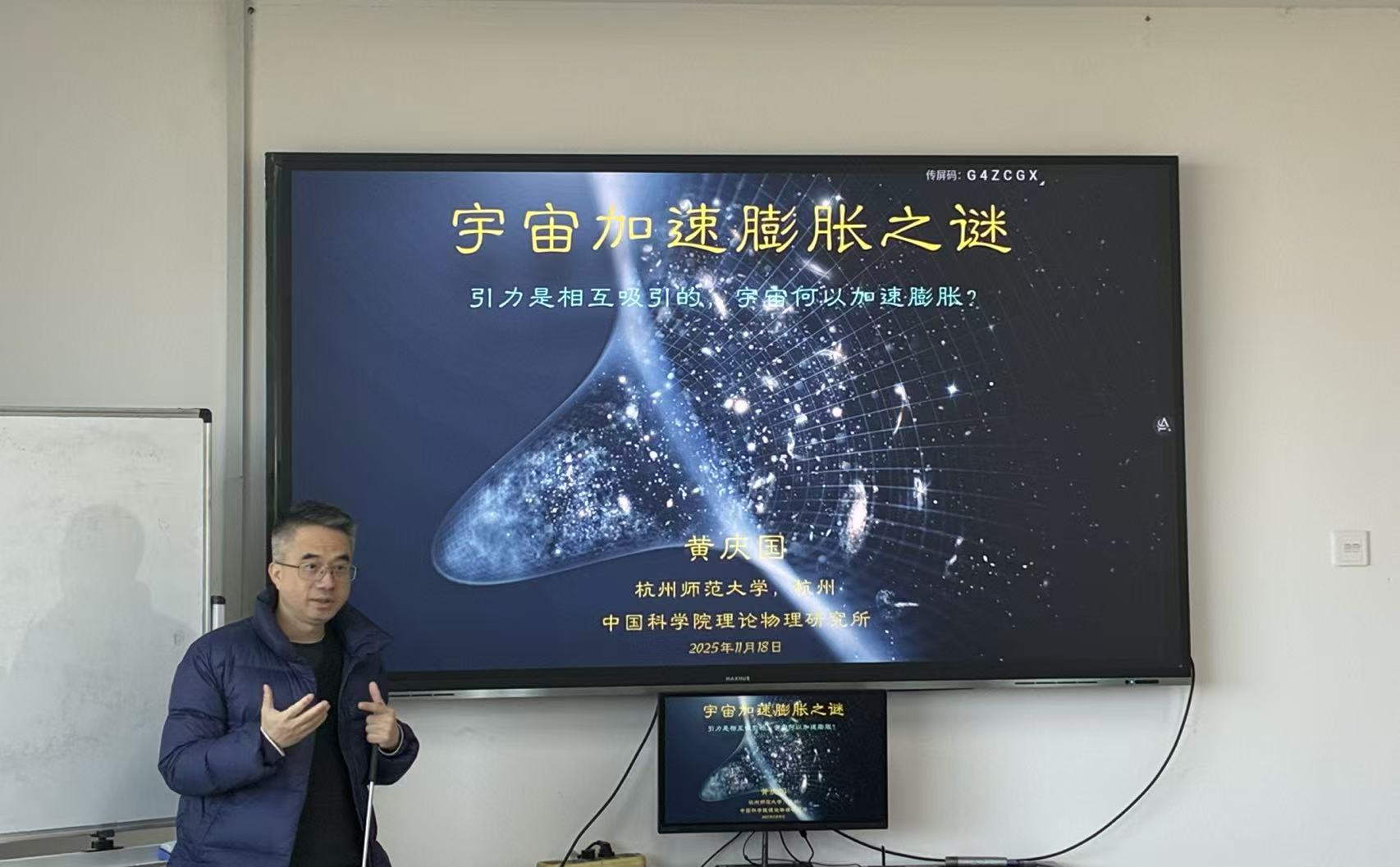 近日,中国科学院理论物理研究所黄庆国研究员应邀来访大米影视 ,并作了题为“宇宙加速膨胀之谜”的专题学术报告,相关领域教师及研究生积极参与交流。