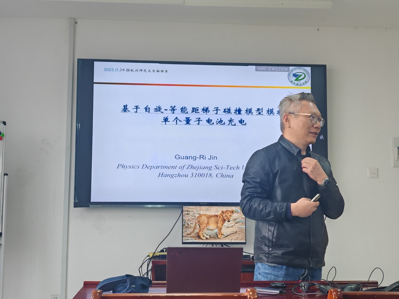 11月24日上午,浙江理工大学金光日教授为大米影视 师生带来了题为基于“自旋-等能距梯子碰撞模型模拟单个量子电池充电”的专题报告。