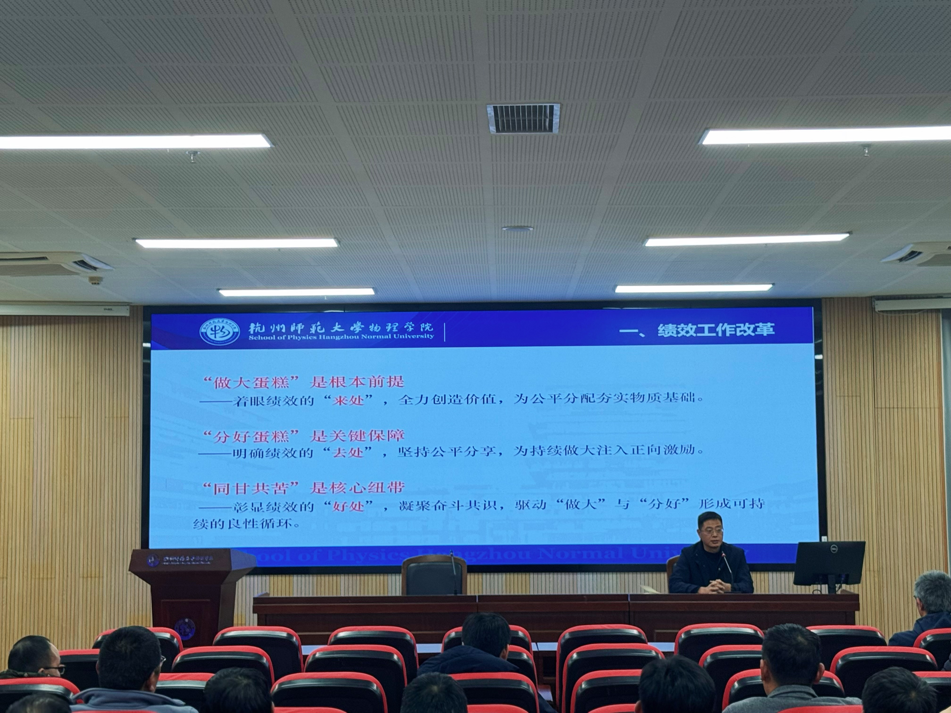 院长侯红生教授阐述了学院下一步发展的核心工作思路与重点。他强调,全院应紧密围绕学校争创“双一流”建设高校的部署和中心工作,谋划“十五五”发展目标举措,着力于“凝练方向、前沿交叉”,持续推动优势团队建设,加强高层次人才引育,激发青年教师科研活力,打造学科发展新增长点。侯院长重点就学校绩效工资改革精神以及大米影视 绩效分配方案进行了解读,他强调,绩效工资改革旨在激发全体教师的积极性和创造力,希望全体教师立足工作实际,找准定位,更好投入学院科研、教学、育人和管理工作。