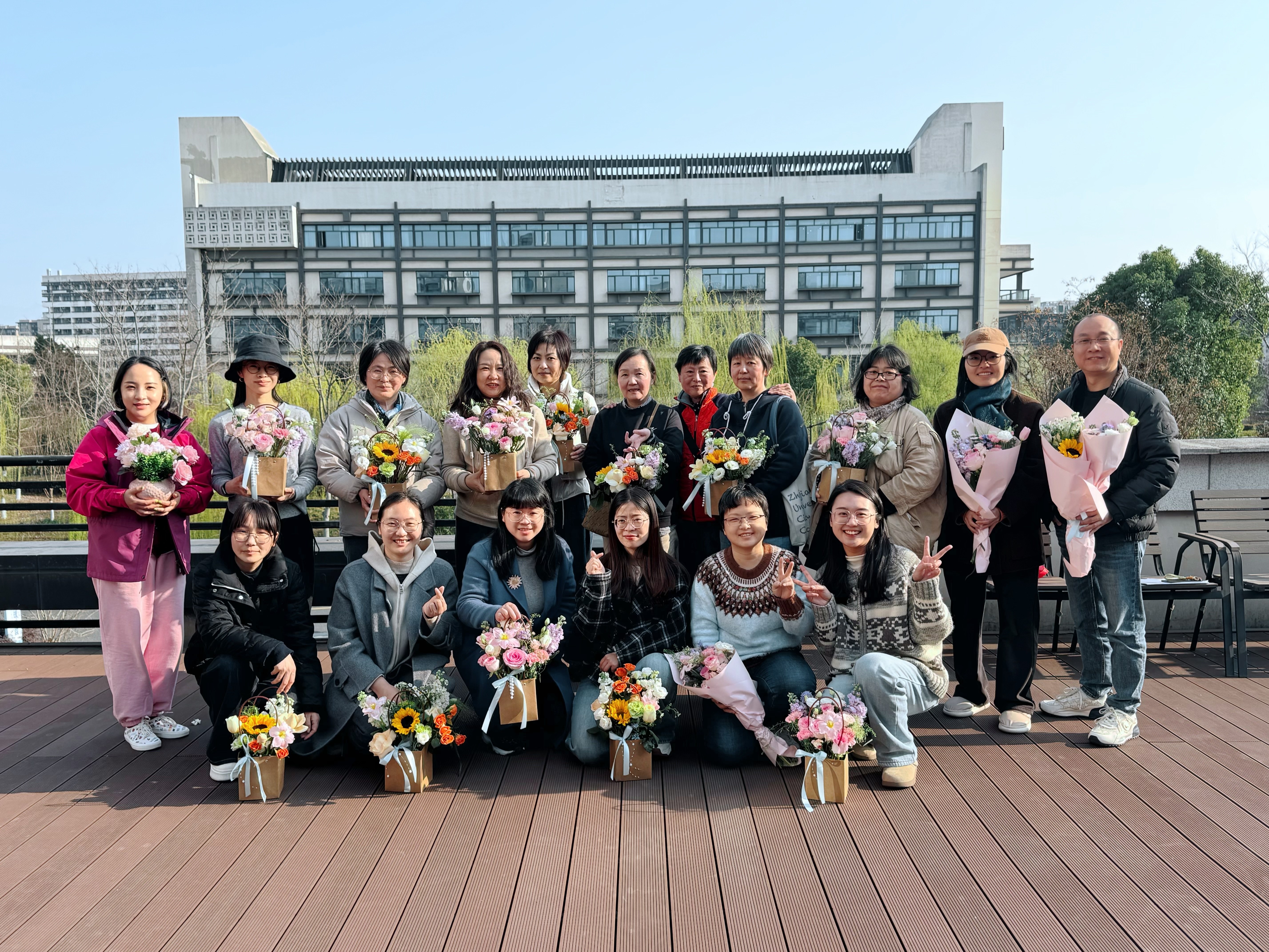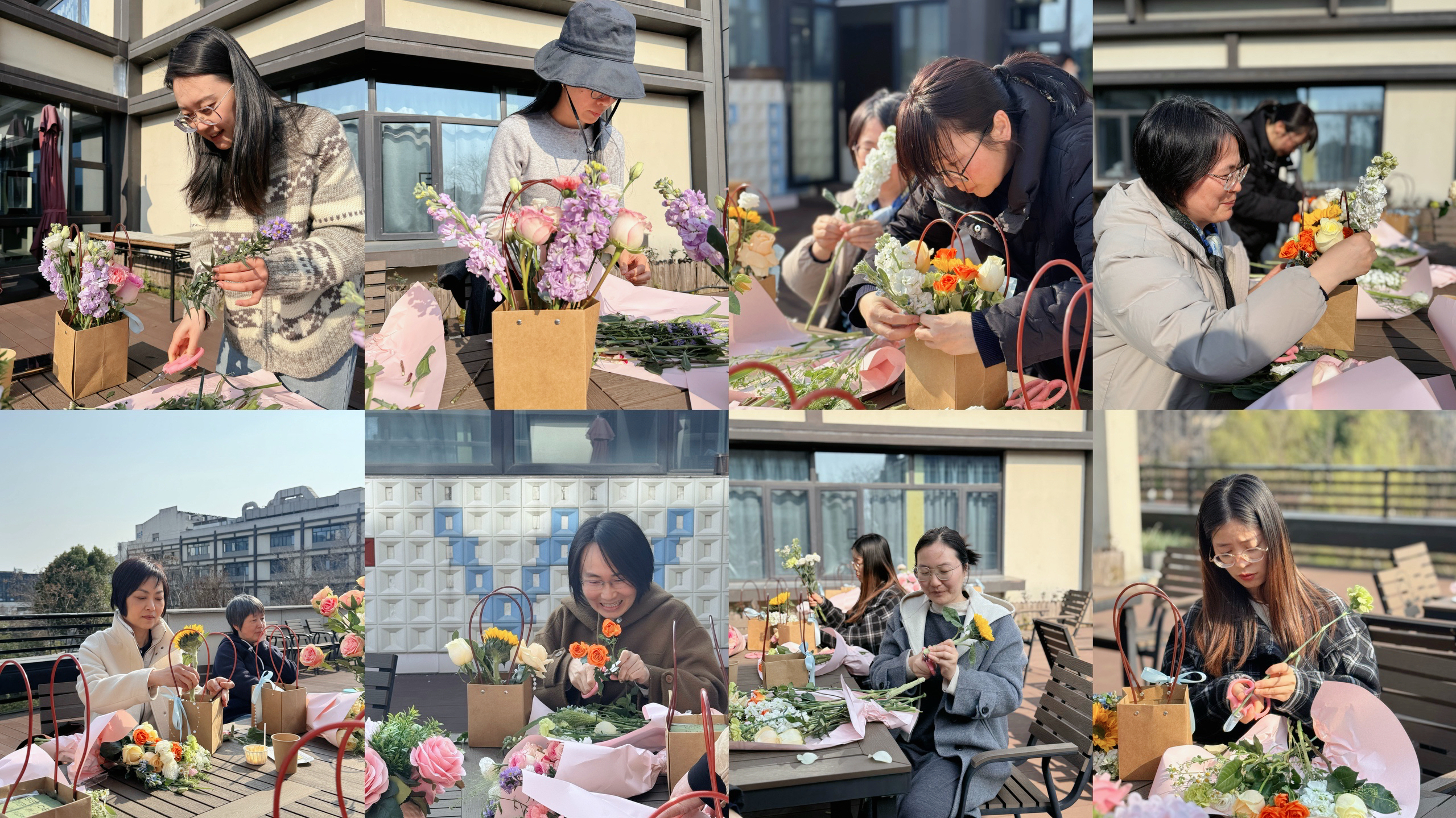 3月12日下午,春风和煦,阳光明媚。为庆祝“三八”国际劳动妇女节,丰富女教职工的精神文化生活,大米影视 在学院露台举办了一场温馨有趣的插花活动,学院众多女教师齐聚一堂,在花香中共度美好时光。